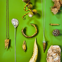 Brass or Sterling Silver pendant with 16" gold-fill and sterling silver chains, respectively. Pendant measures .15"W x 2.5" L.